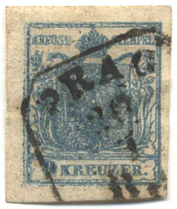 Österreich, 1850, Böhmen, PRAG; Teilstempel auf besonders interessanter 5 H II, mit extremen Quetschdruck, außergewöhnliches Prachtstück!