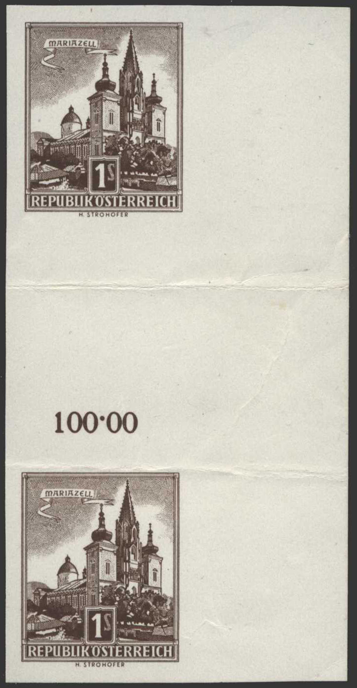Numero di catalogo: 1110 Österreich, 1946, ANK 804 Udr + 807 Udr, jeweils senkrechtes Paar mit DREISEITIG UNGEZÄHNTER MARKE unten, vom Bogenrand, echt und einwandfrei postfrisch, Attest Soecknick, KW 3200€
