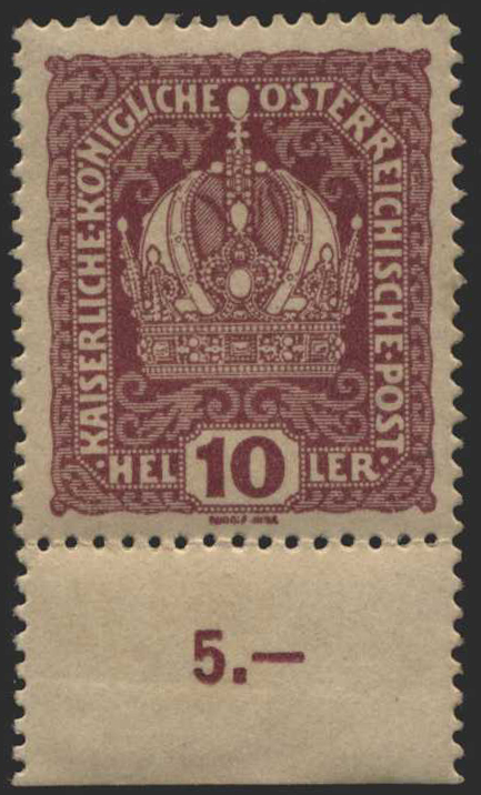 Numero di catalogo: 418 Österreich, 1905, 131 PU, 60 h., Kaiserkopf klein ohne Lackstreifen, Farbrobe in Rosa vom Oberrand mit Randleiste, ungebraucht ohne Gummi (*), echt und einwandfrei, Luxuserhaltung