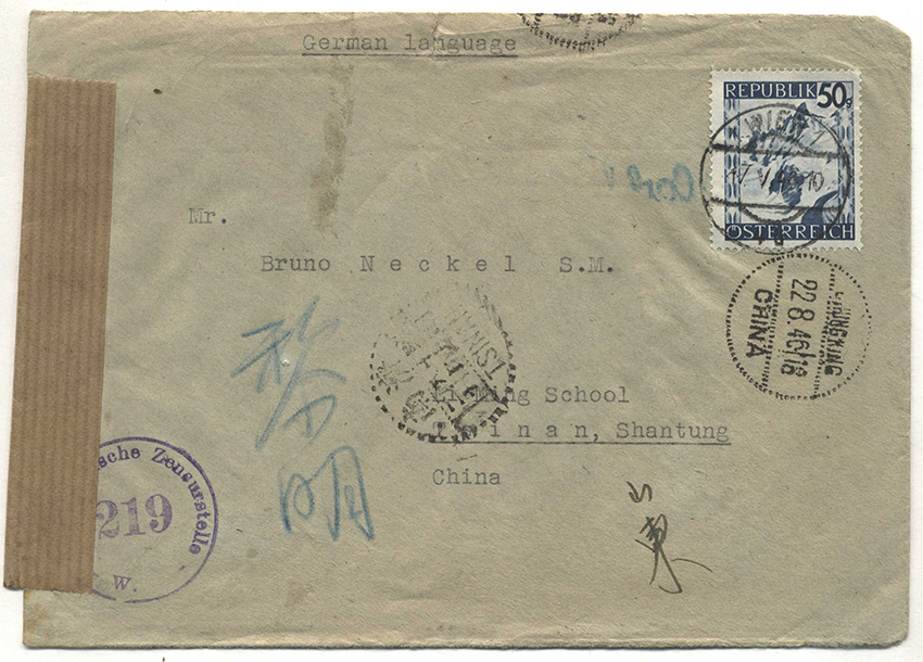 Numero di catalogo: 944 Österreich, 1946, WIEN - TSINAN, Auslandsbrief vom 7.5.46 mit portogerechter Einzelfrankatur der Nr 760, zensuriert, einwandfreie Erhaltung!