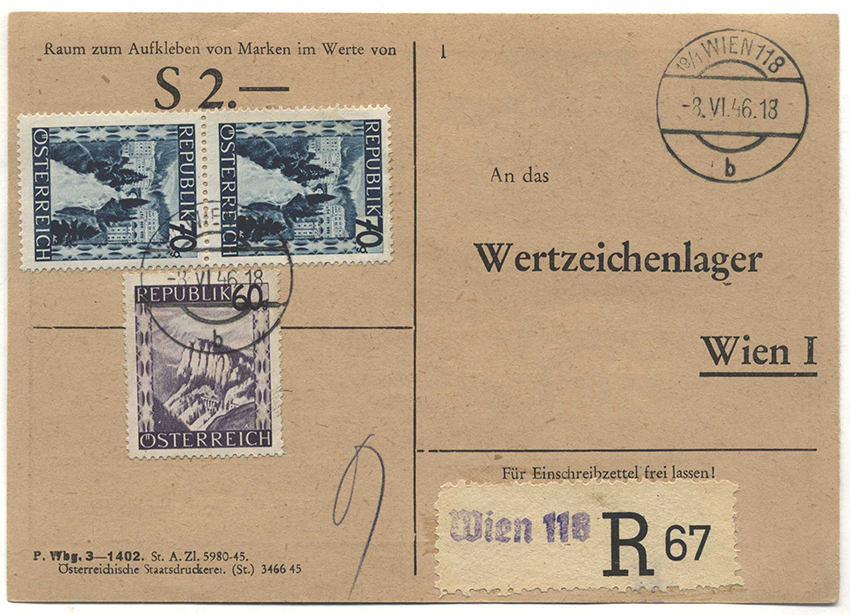 Numero di catalogo: 952 Österreich, 1946, WIEN, Wertzeichen - Bestellkarte, Reko frankiert mit 764 (2) + 763, portogerecht mit 2 Schilling, Pracht!