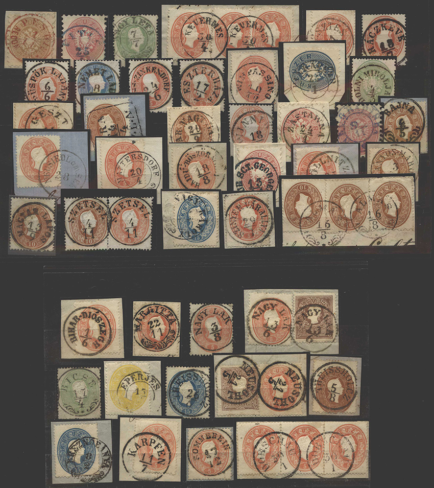 Österreich, 1861/64, UNAGRN und GEBIETE, Abstempelungslot mit vielen besseren bzw. seltenen Entwertungen in sauberer Qualität auf frischen PRACHTWERTEN! empfehlenswert! große und kleine Steckkarte