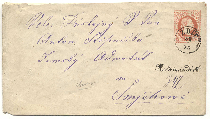 Österreich, 1867, MANETIN, außergewöhnlich seltene und besonders wirkungsvolle Frankatur eines REKOBRIEF nach KRALOWITZ mit insgesamt 10 WERTEN DER 2 KREUZER - MARKE im feinen Druck (35 II), vorderseitig ein waagrechter ... mehr lesen