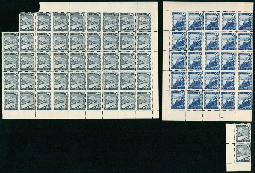 Numero di catalogo: 398 Österreich, 1945, Nr 750 +757, Partie komplette Bögen, 23 Bögen der Nr 750 u. 17 der Nr 757, zusätzlich kleinere Bogenteile