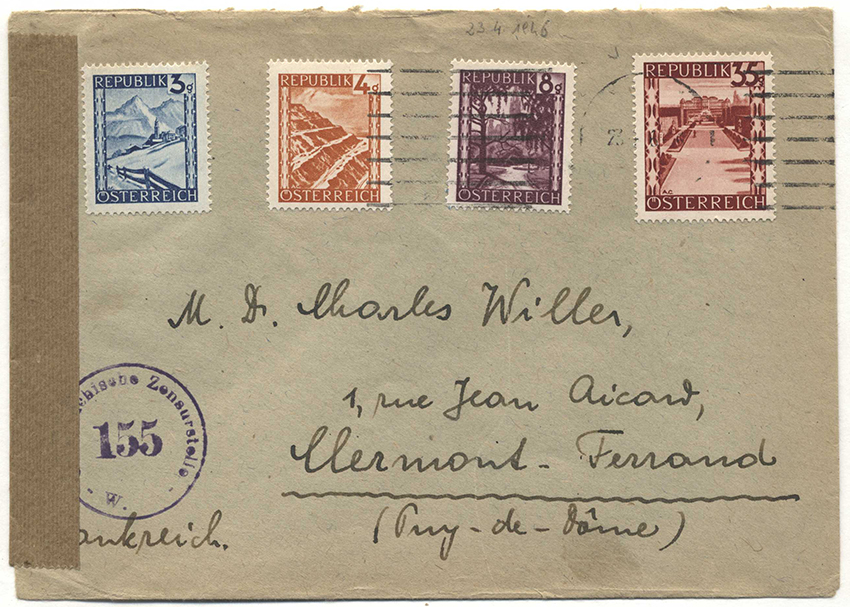 Numero di catalogo: 919 Österreich, 1946, FROHNLEITEN - WIEN, interessanter Beleg vom 19.3.46 mit Doppelzensur und jeweils zwei Zensurstempel und Zensurstreifen, portogerecht frankiert mit 3 x 742, Prachtbeleg!